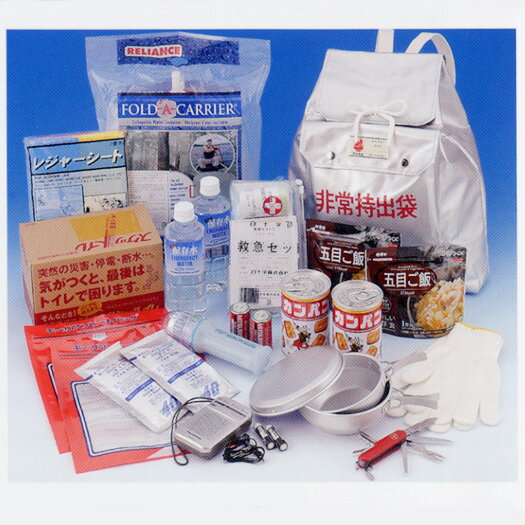 非常食が充実している非常用持出セットです非常用持出袋セットA(14点セット) 価格: 18,900円 レビュー評価: 5.0 レビュー数:1 非常用持出袋セットA(14点セット)食事とトイレに重点をおいた非常用持出袋セットです。■セット内容:【1】 非常持出袋(シルバーリュック式/防炎協会認定品)【2】 折りたたみ給水容器(10リットルホールドキャリア取っ手、蛇口付)【3】 缶入りカンパン 【4】 マジックライス・五目ご飯(5年保存100g×2個)【5】 発熱剤2セット 【6】 飲料水(5年保存500ml×2本)【7】 簡易トイレ(スケットイレS-7N)【8】 防水ライト(単一電池2本付)【9】 携帯ラジオ(電池付)【10】 組食器(アルマイト3点セット)【11】 救急セット/コットン(20g)、救急絆(10枚)、伸縮ホータイ( Supported by 楽天ウェブサービス |