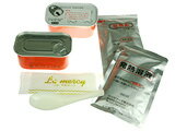レスキューフーズ II型[非常食 保存食] 価格: 1,050円 レビュー評価: 0.0 レビュー数:0 商品説明「レスキューフーズ II型」は、救援活動をする方、避難中の方などに最適な非常食セットです。発熱剤・発熱溶液の使用により、火や水、電気などを使わず、約20分で温かい食事を召し上がる事ができます。レンゲと紙ナプキンが入っているので、他に食器がなくとも食事が可能です。栗五目御飯の缶詰と、つくねと野菜のスープの缶詰の組み合わせです。缶はお弁当の形をしており、温めて開缶するだけで、直接食べられます。具沢山の味付けご飯と共に、温かいスープをお召し上がり頂けます。賞味期限:3年間。セット内容栗五目ごはん(缶詰)、つくねと野菜のスープ、発熱剤、発熱溶液、レンゲ、紙ナプキン使用方法1、開封し全部を袋から Supported by 楽天ウェブサービス |